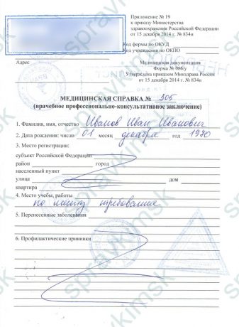 Образец готовой справки 086у