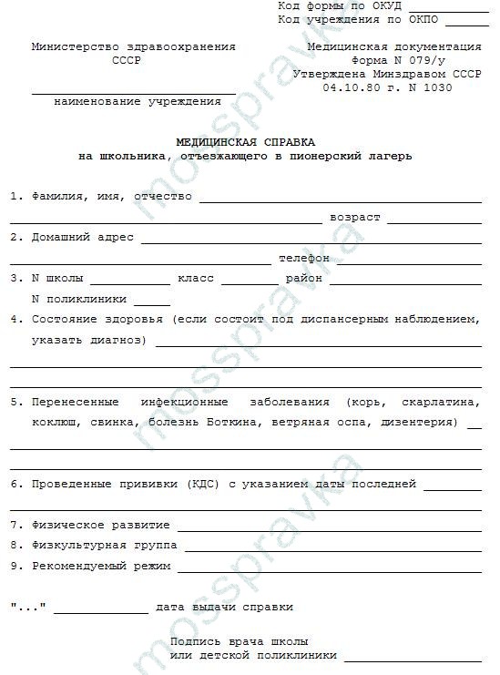 Что такое справка в лагерь для ребенка 079/у