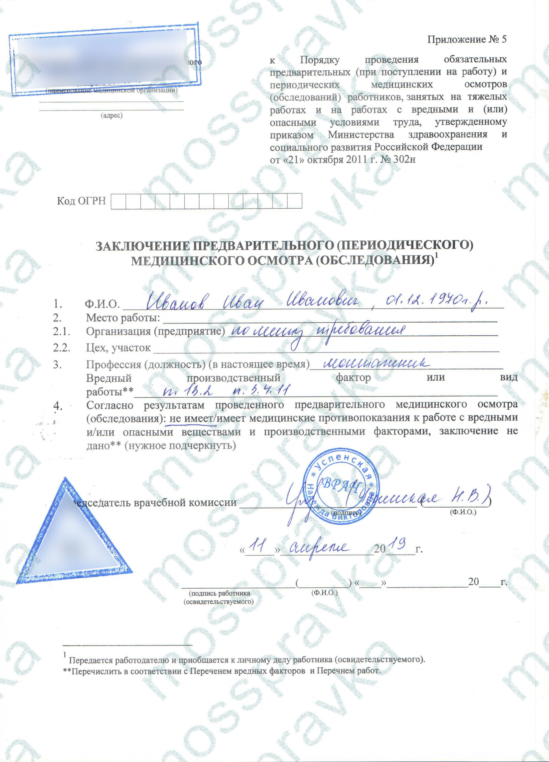 Вы можете купить справку 302Н в Москве без посещения врачей и очередей, с подписью и печатью, с доставкой по низким ценам.