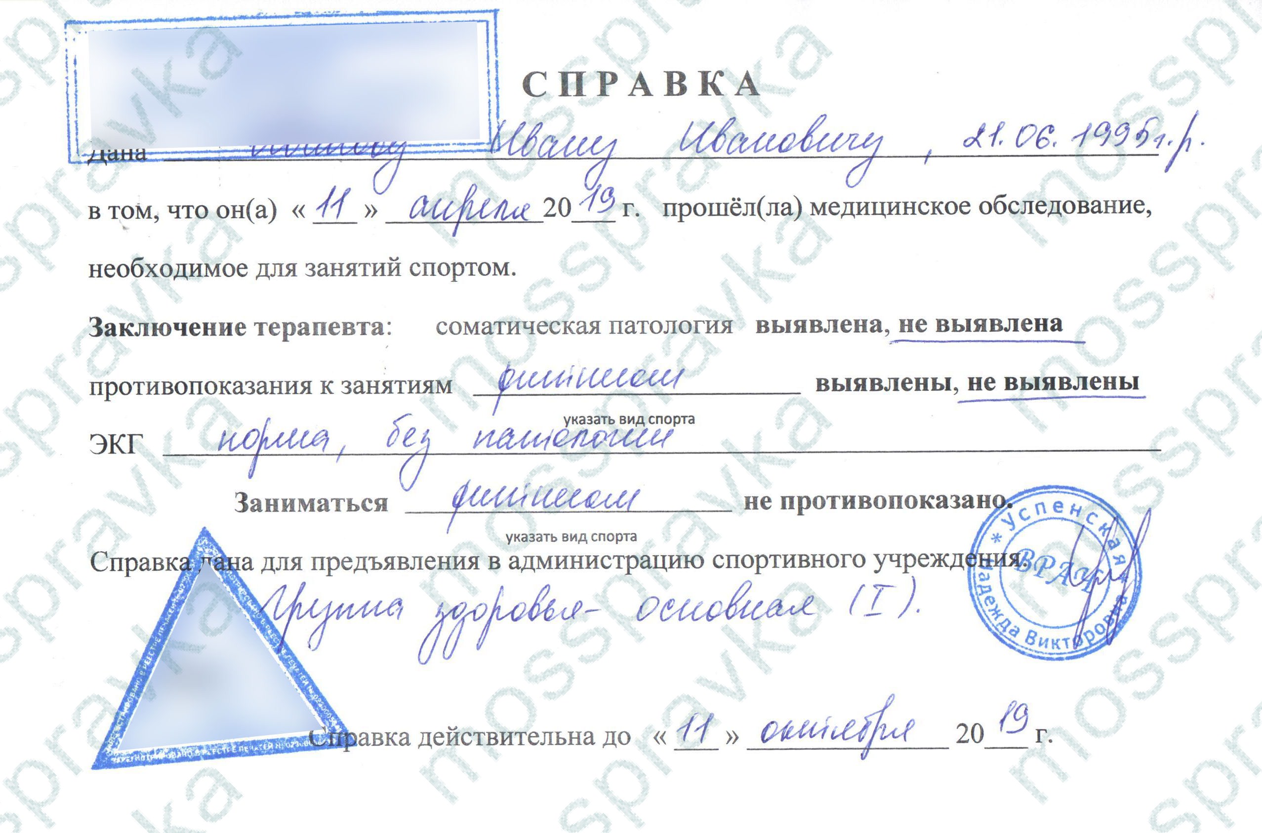 Справка о противопоказании занятий спортом или для допуска к физкультуре оформляется в любой городской поликлинике. Вы можете сходить в ту, где вы состоите. После прохождения предварительного осмотра надо пройти полное обследование, после чего врач выдает физкультурную справку о группе здоровья, подтверждающая определенное состояние здоровья. Данная справка действует в течение года. Ее можно предъявить в учебном заведении, например, в дошкольном. Если у врача будет подозрение на заболевание, то отправит к следующим специалистам: