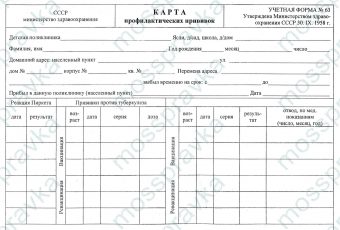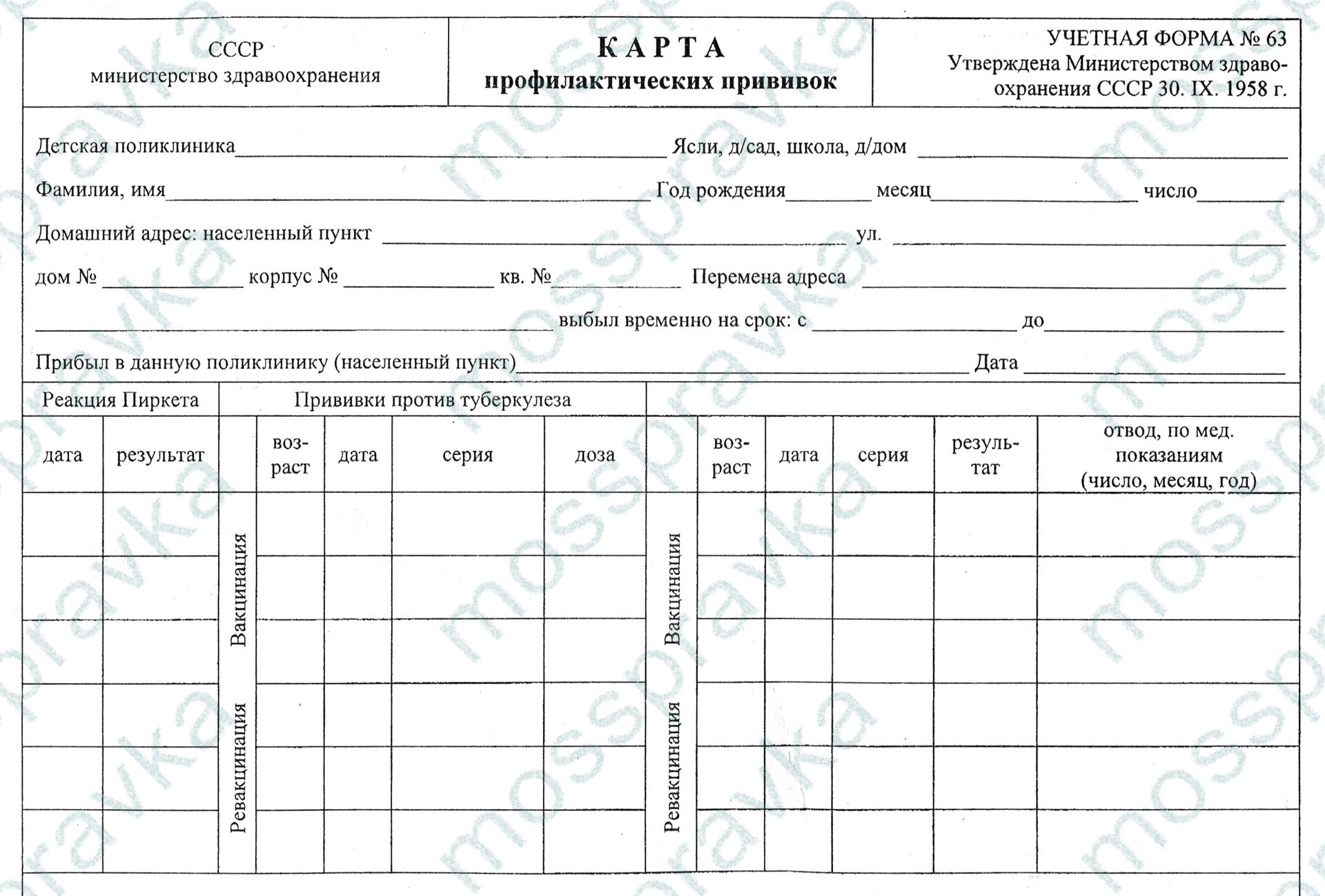 Бланк на бумажном носителе представляет собой перечисление вакцинаций, ревакцинаций от опасных болезней. Указывается ФИО дошкольника, его дата рождения, возраст, место жительства и организация предоставления справки, дата выдачи. Заполнивший её врач или медсестра ставит подпись, треугольную печать и штамп с наименованием учреждения здравоохранения. В список входят прививки с первых дней жизни. Основанием являются сведения обо всех иммунных профилактических составах и вакцинах, указанных в амбулаторной карточке, заполняемой педиатром. Прописываются: датировка введения лекарства, его наименование, серийный номер, доза, место прививки, реакция организма на вещество, название инфекции. Исчерпывающий перечень даёт карта прививок по форме 063/у.